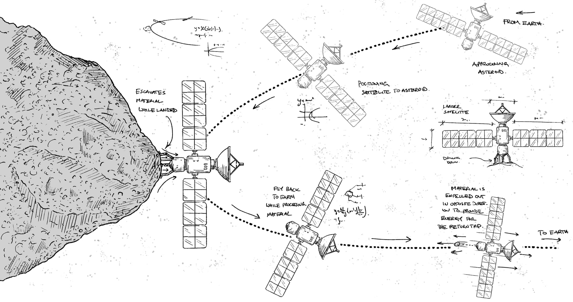 We’re calling our first missions our Touch-And-Go phase. These are individual missions with a relatively small spacecraft (<1,000kg), going to a near Earth asteroid to mine material that can be used as fuel in space. We expect to return useful material to orbit, where it can be distributed through fuel depots that manage the last mile.